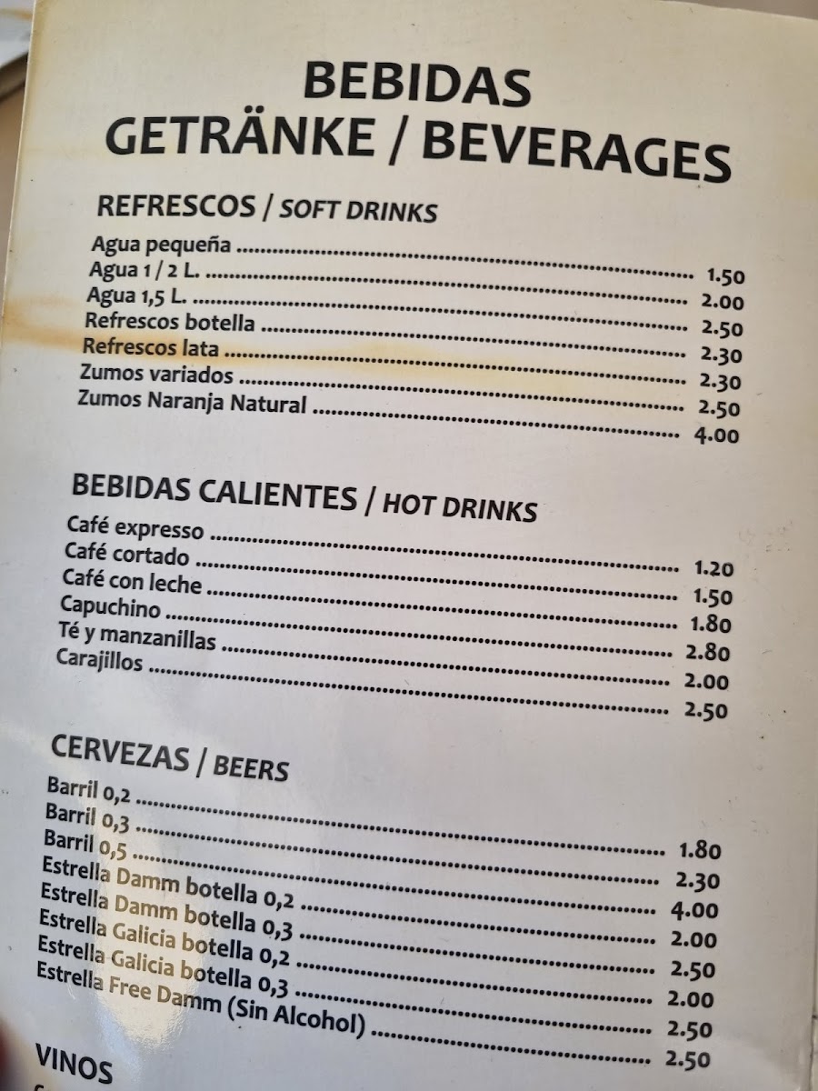 Casual bites like pan con aceitunas y aioli or patatas fritas con huevo pair nicely with their selection of refreshing drinks, making them perfect for unwinding after a day at the beach or sharing with friends over conversation. The menu blends traditional Mediterranean flavors with comforting classics, offering something approachable for both locals and visitors.